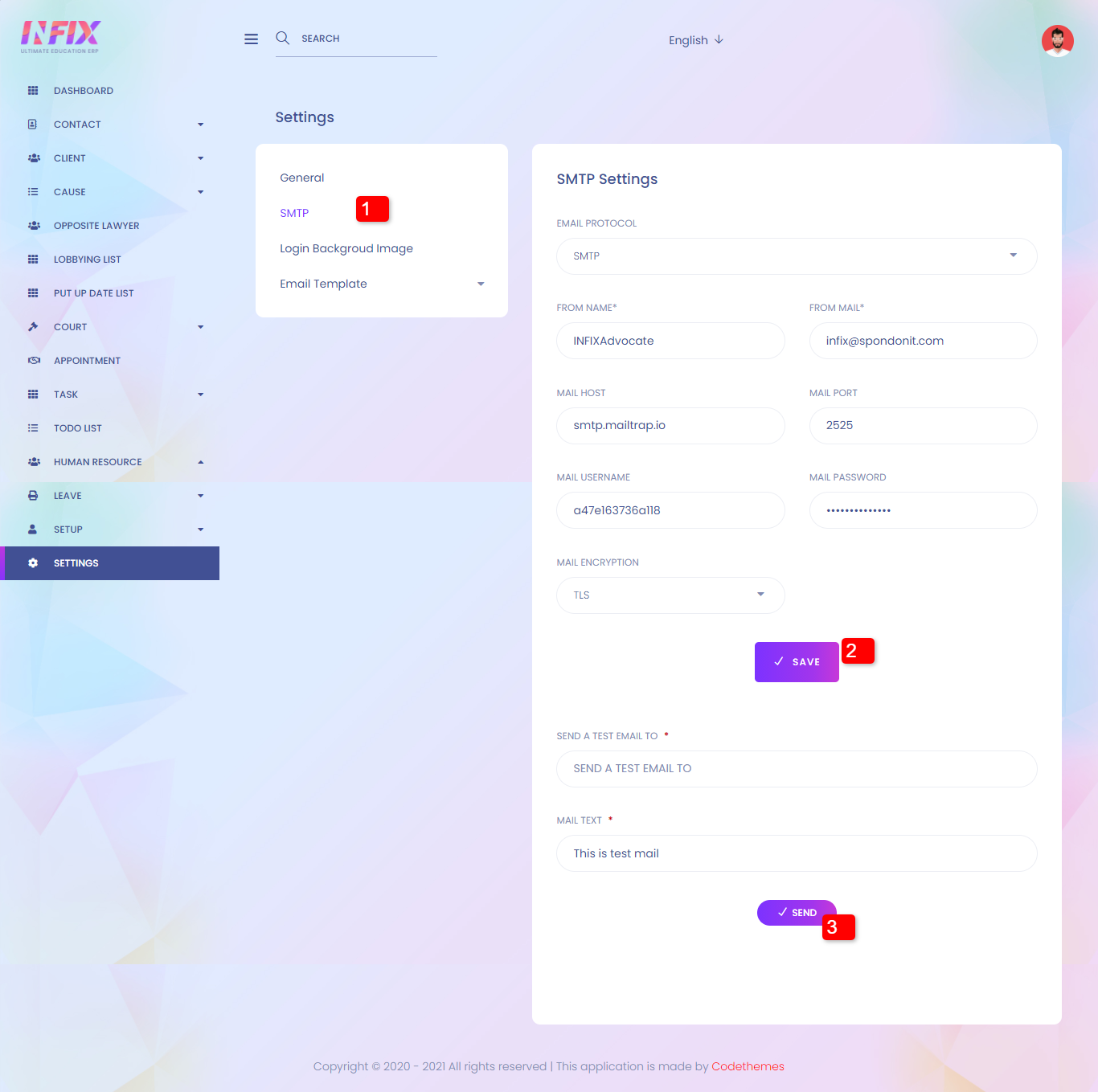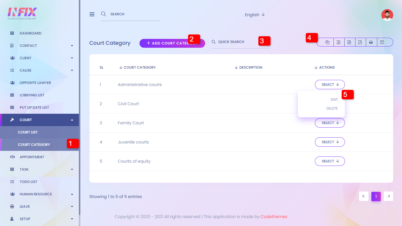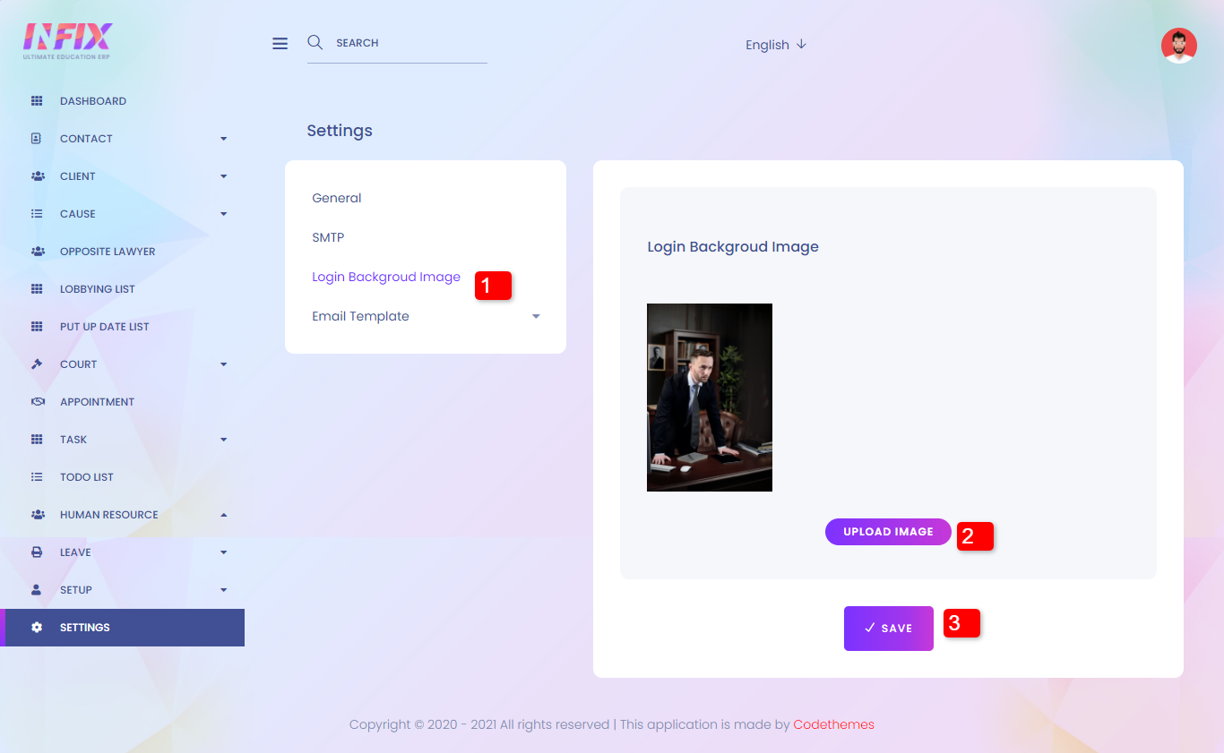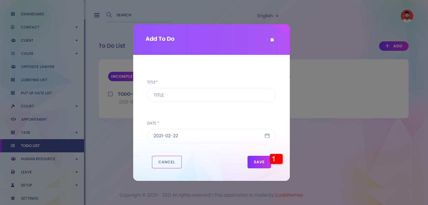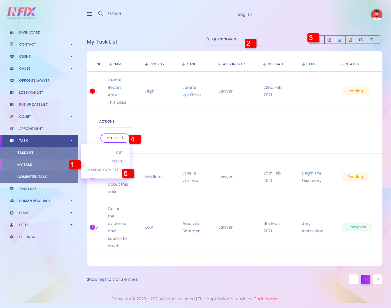 At the top menu of left sidebar is Dashboard. There are several view port in dashboard. we can see the number of case, Court and contact etc. at a glance. After login a user can see the update for that day.