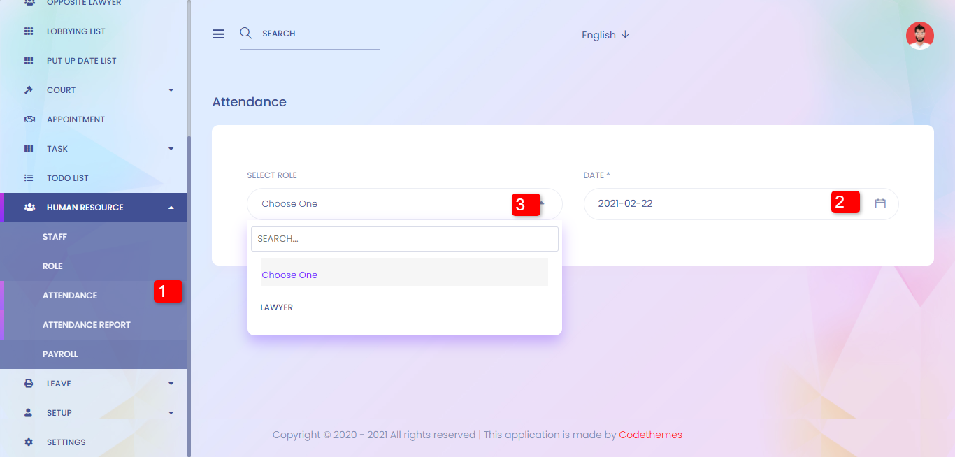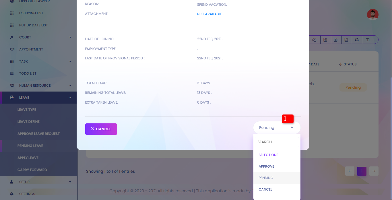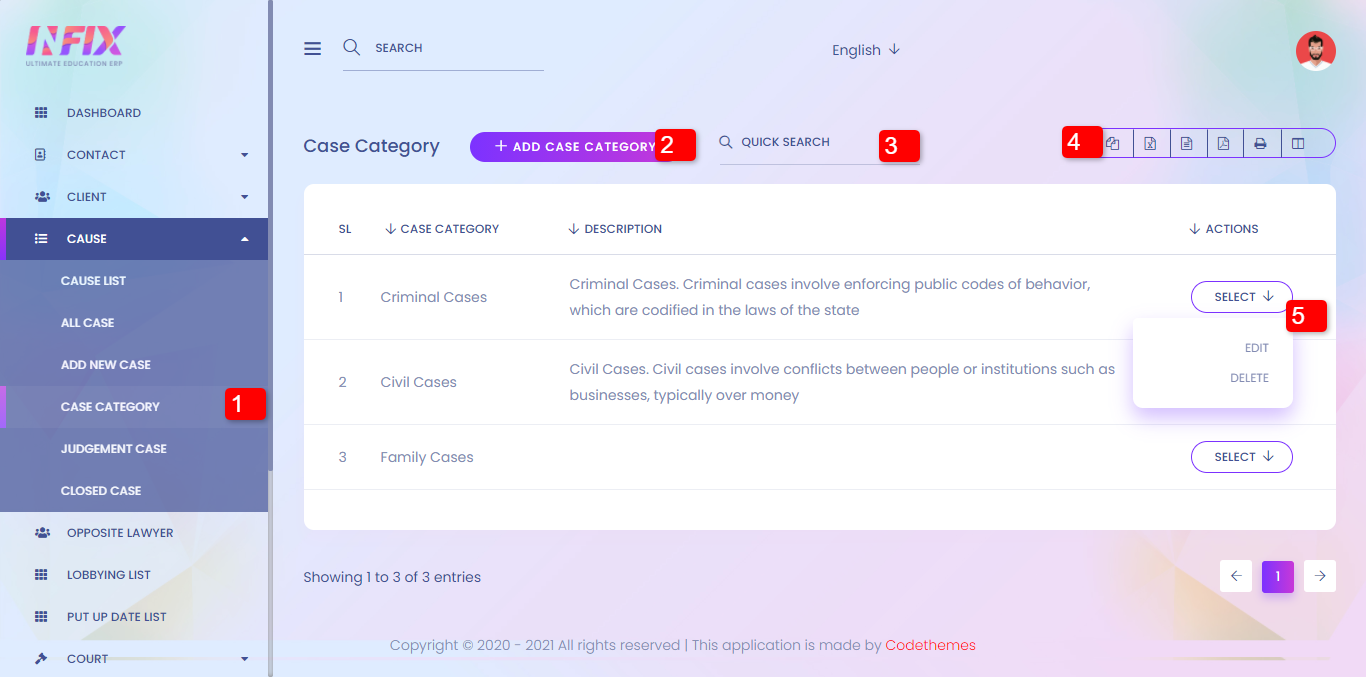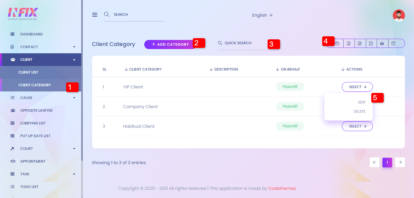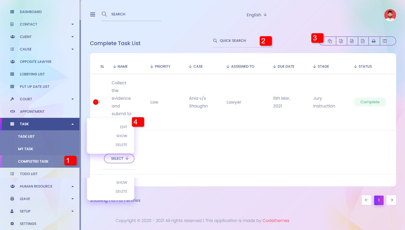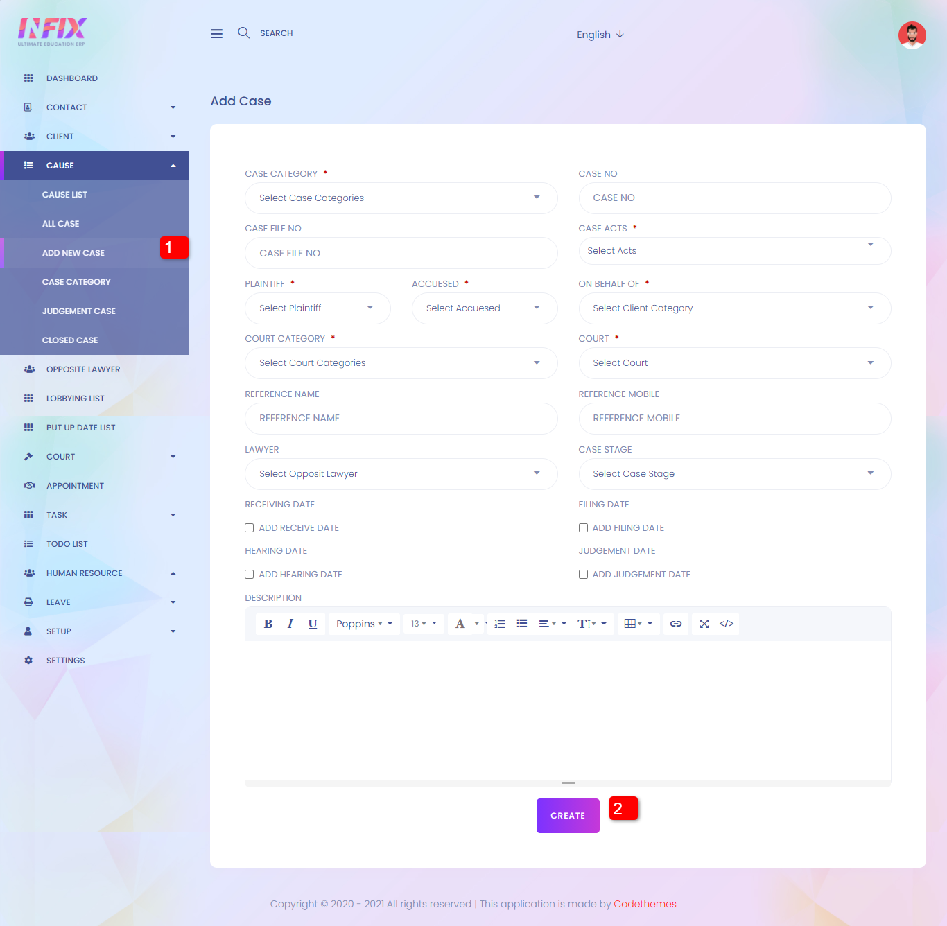 From those section we can khow about number of Client, Lawyer, Contact, Rumming case, Closed Case.