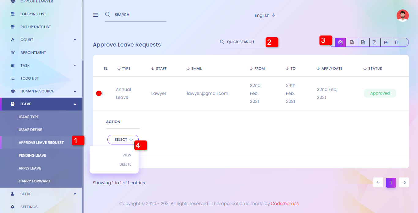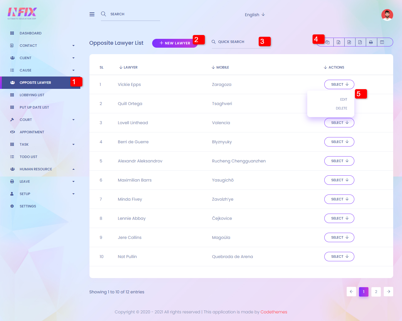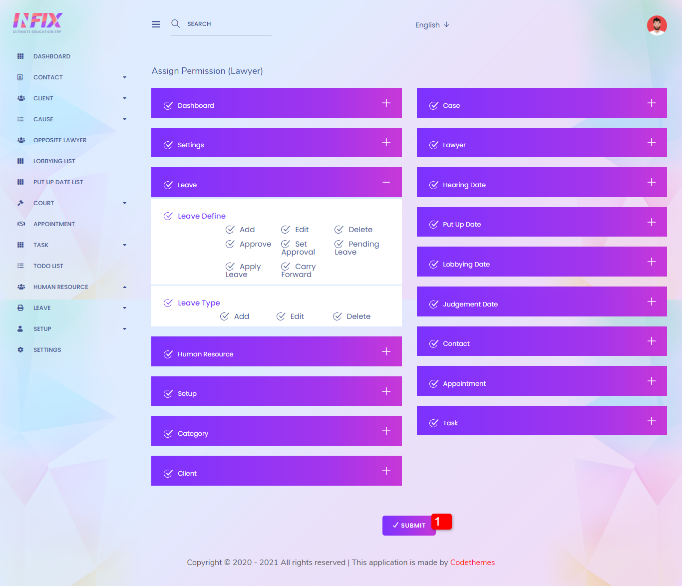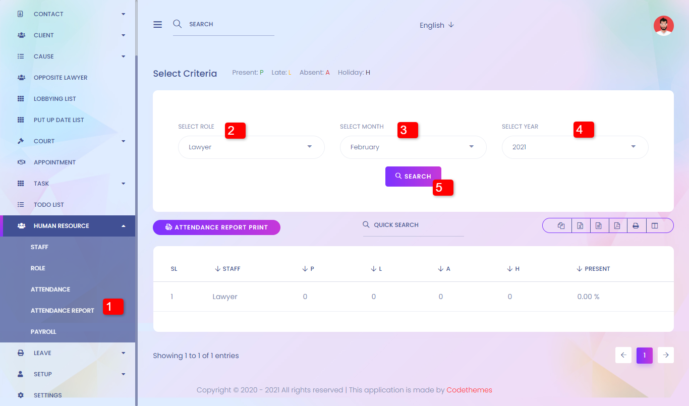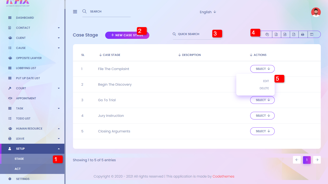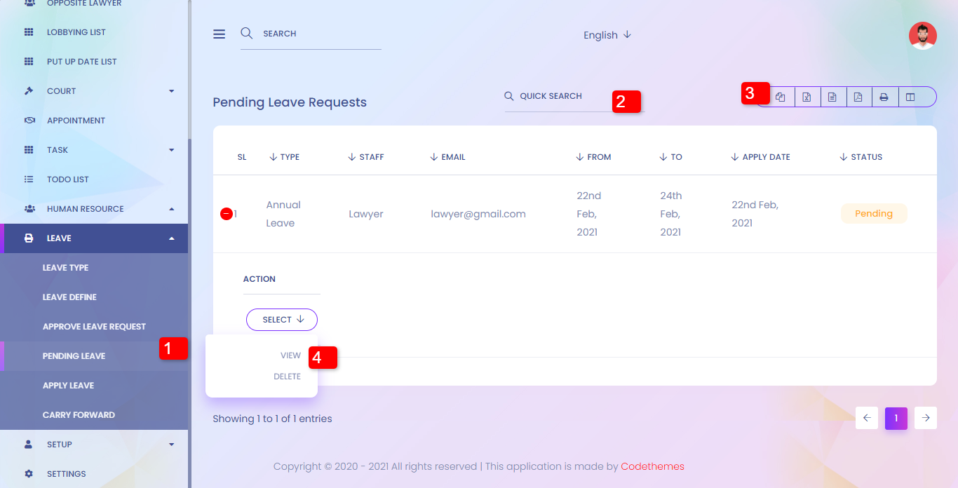 From those section we can khow about number of Client, Lawyer, Contact, Rumming case, Closed Case.