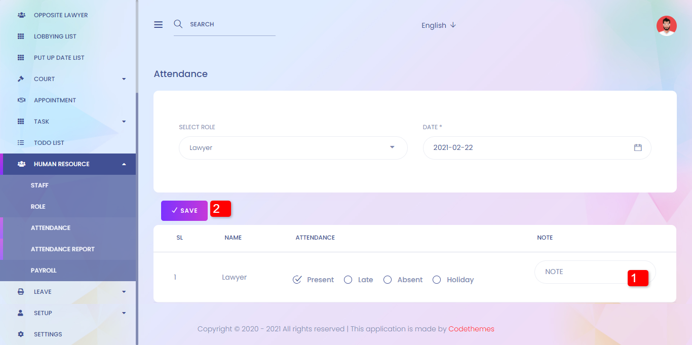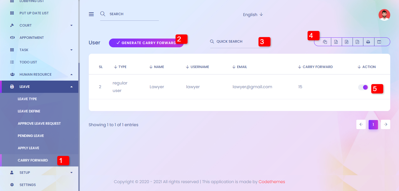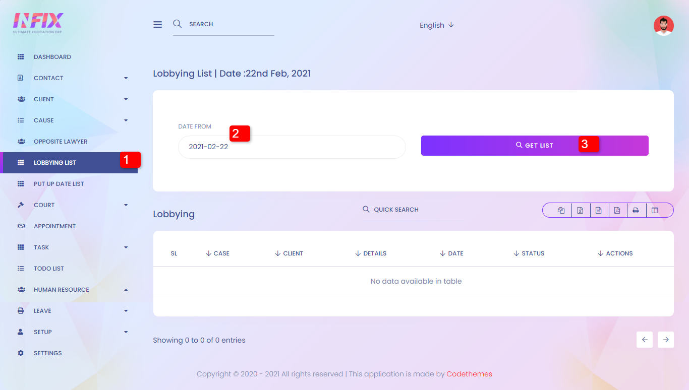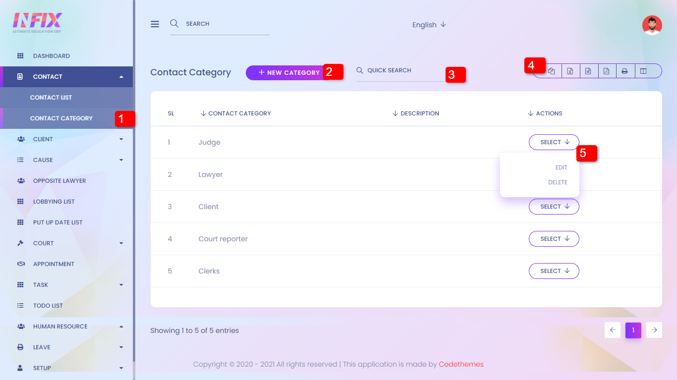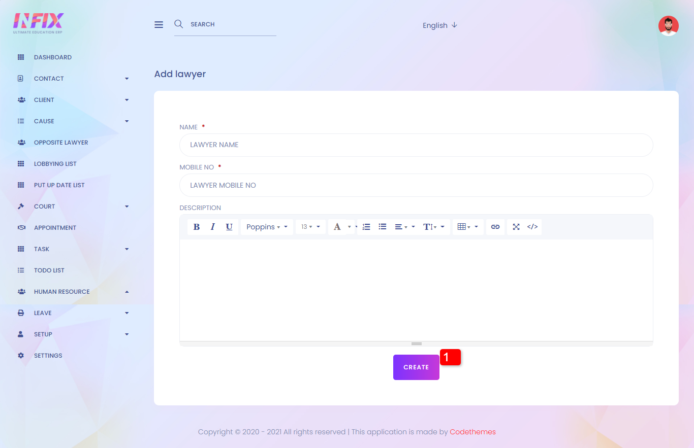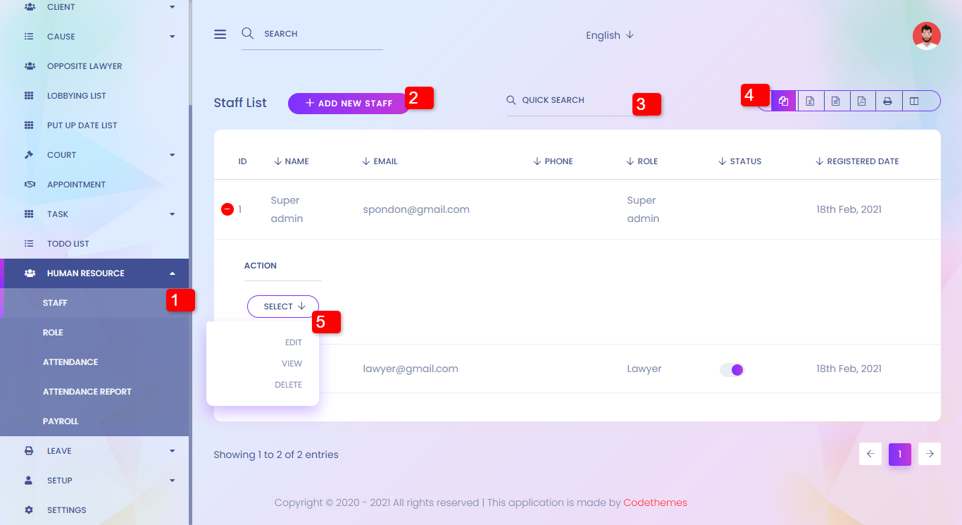 From those section we can khow about number of Client, Lawyer, Contact, Rumming case, Closed Case.