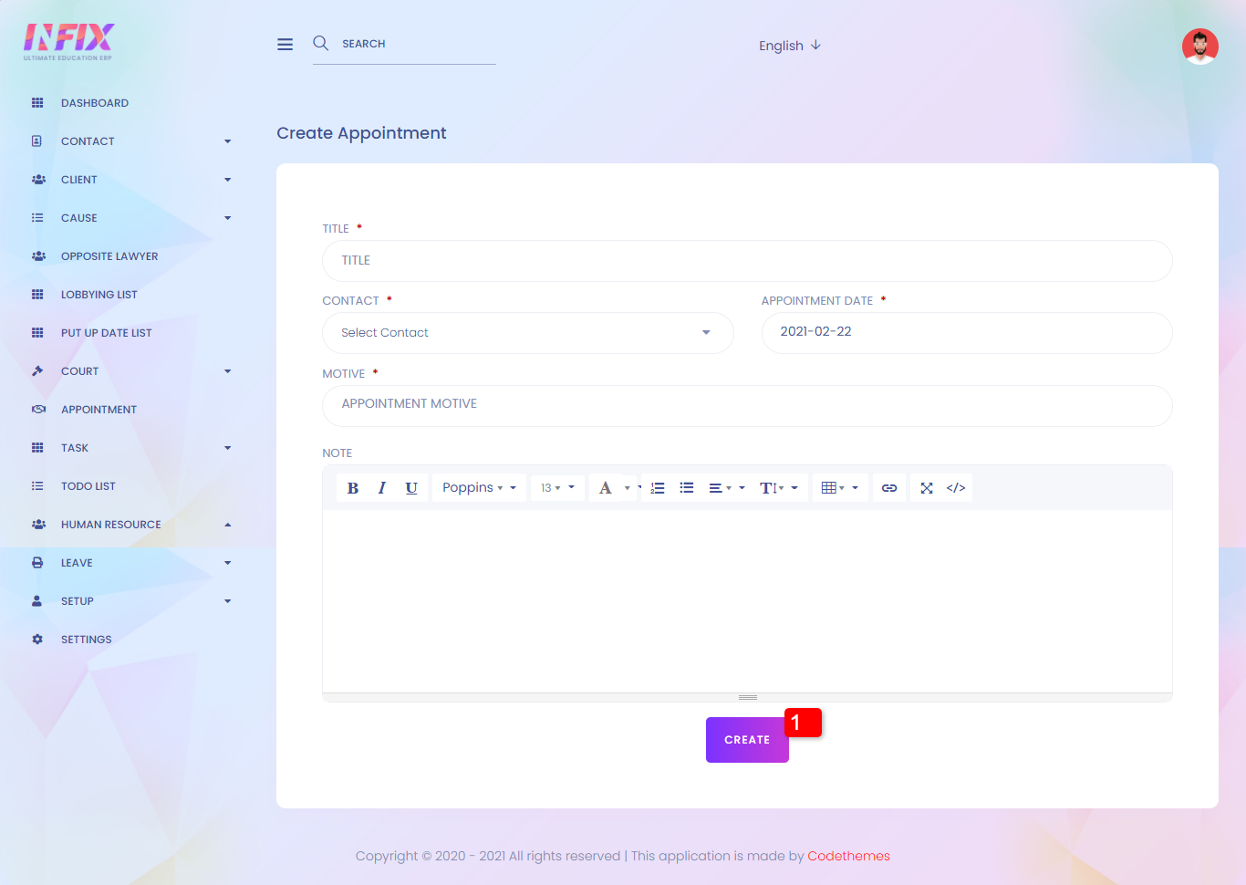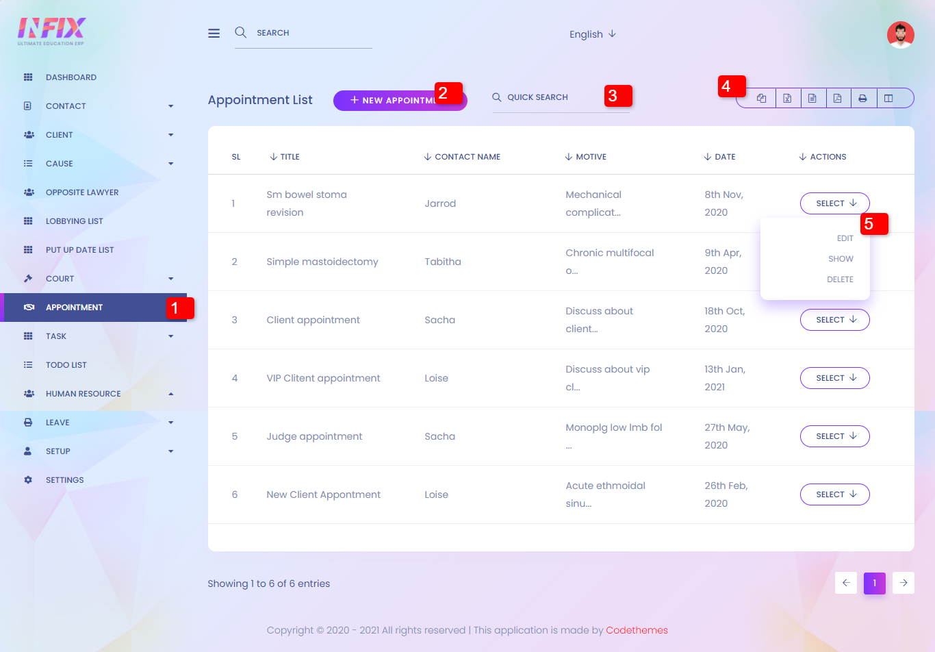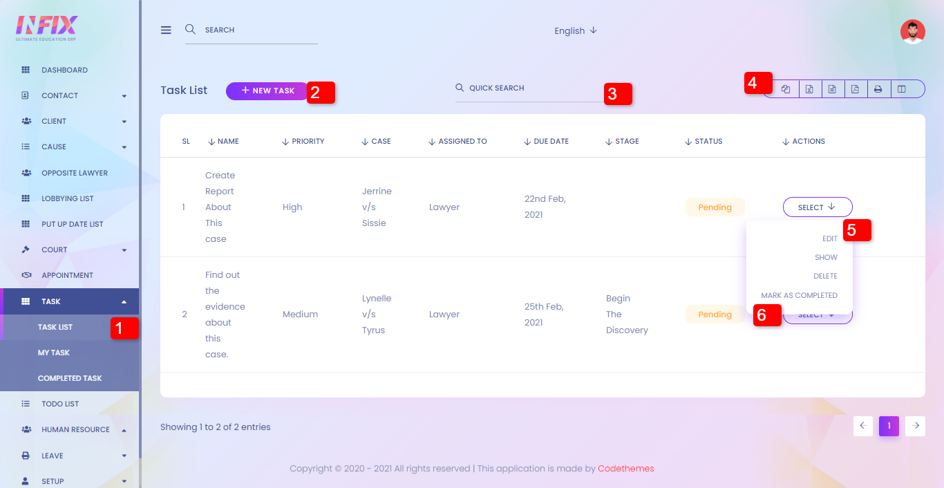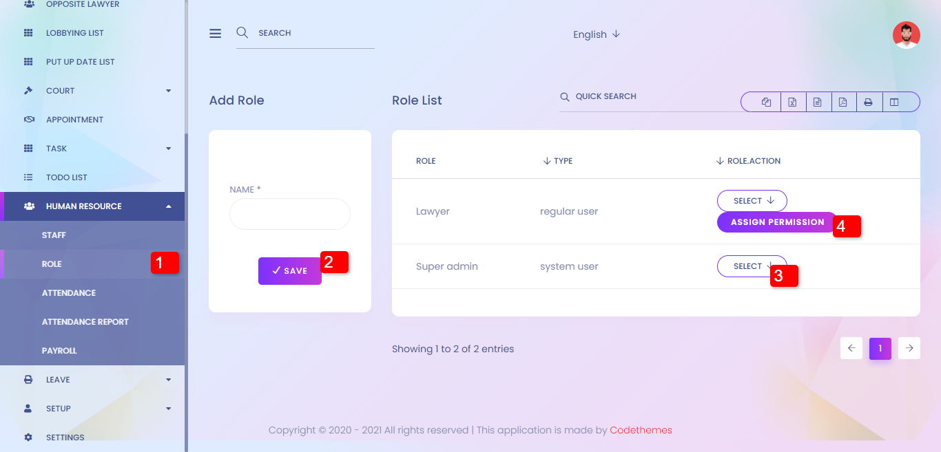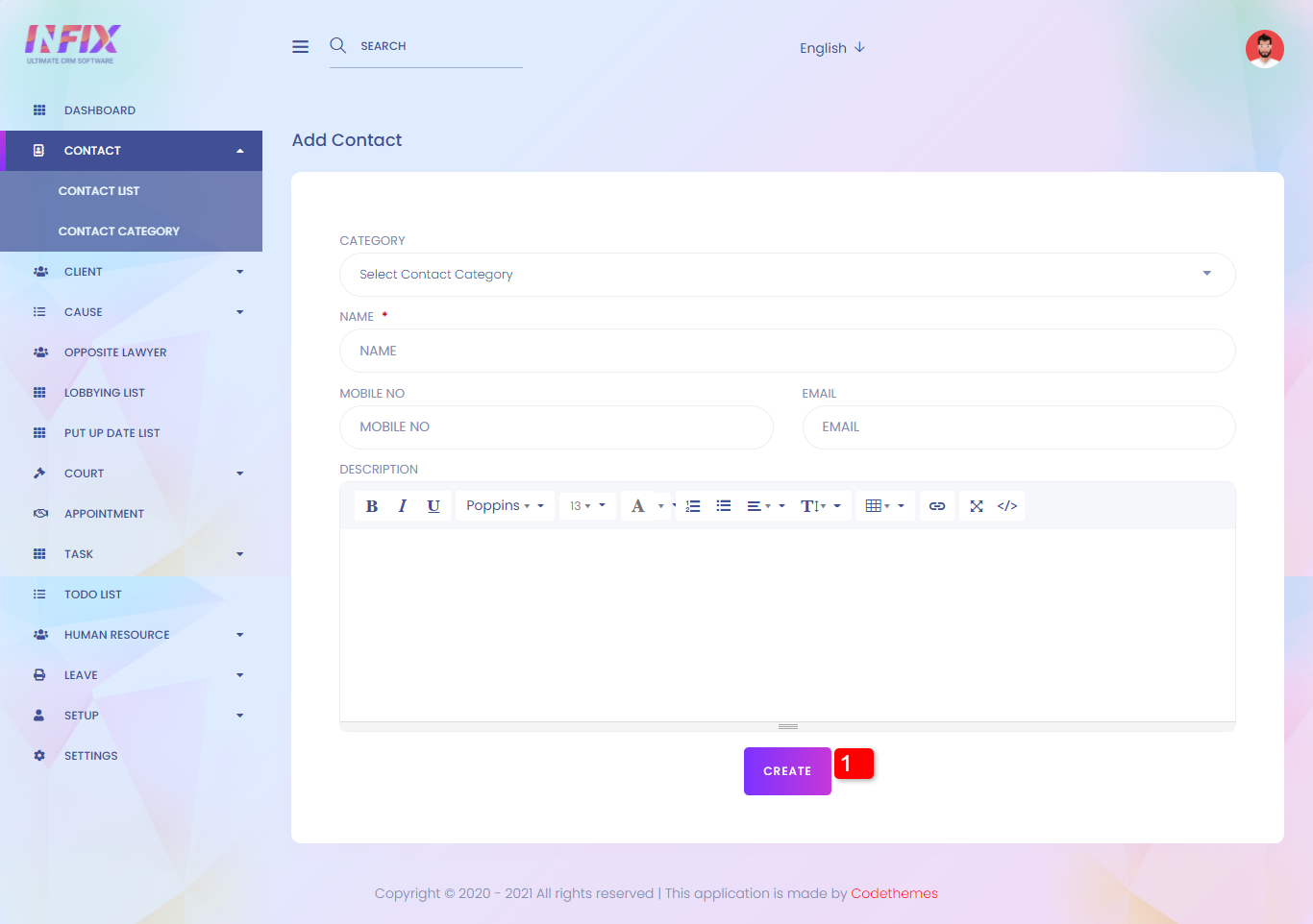 From those section we can khow about number of Client, Lawyer, Contact, Rumming case, Closed Case.
