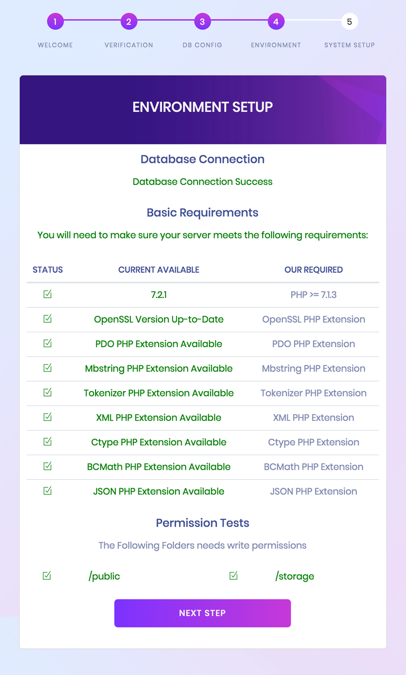 Checking Database configuration and Files & Folders permissions. If all thing is ok Press Next Step