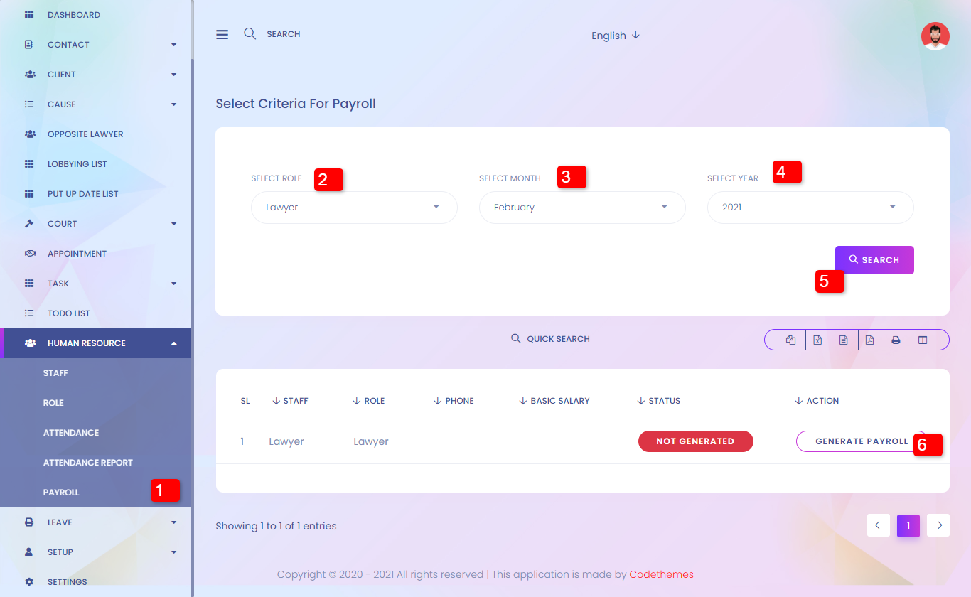 h3>For get list after selct all field click the seach button. Then it will show the all staff payroll under this role.